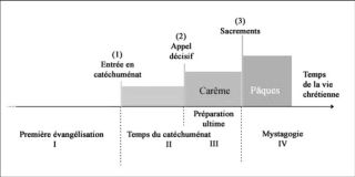 Le chemin de l’initiation chrétienne est constitué de quatre temps séparés par trois étapes.
