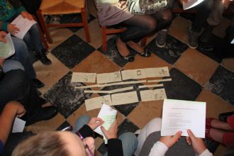Pour lancer la réflexion un petit jeu est proposé, par exemple retrouver à partir de pièces d’un « domino » le texte de l'évangile.